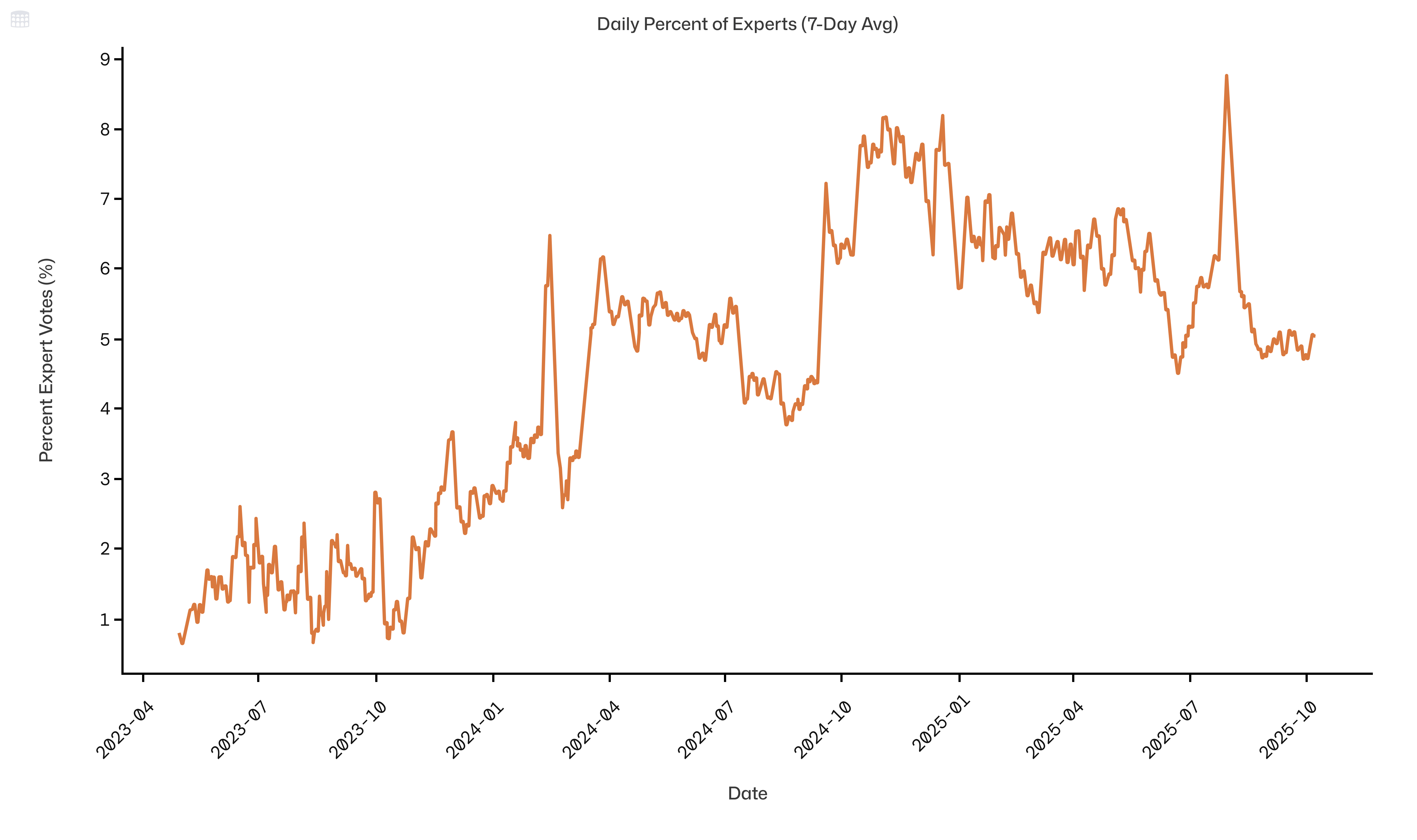 Figure 4. Daily percentage of expert prompts over time.
